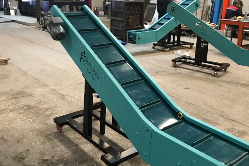 Paletli PVC Bantlar yüzeyde bulunan paletleri sayesinde normal bantlara tutunamayan ürünlerin eğimli yüzeylerde taşınmasına olanak sağlar.